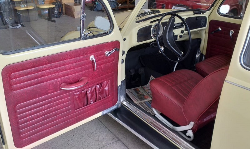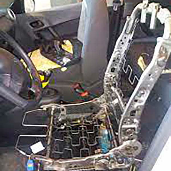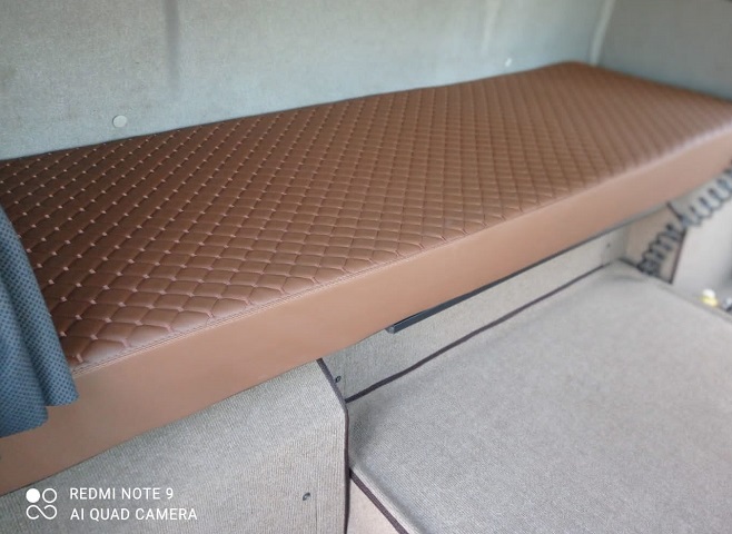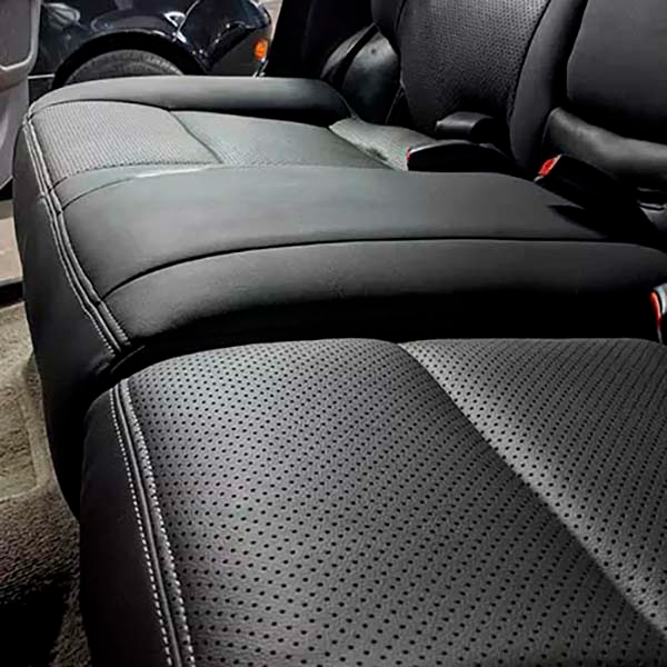 Serviço de conserto e restauração do interior de um veículo, ônibus ou caminhão, incluindo os assentos, o teto, as forrações e tapetes. Serviços de estofamento, em geral.